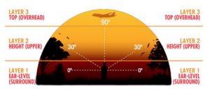 Using the three orthogonal axes (x, y, z) the speaker setups reproduce true three-dimensional sound as a hemisphere all around the audience. Auro-3D introduces the third dimension “Height” to movies and music, which transforms and augments their emotional impact. The Auro-3D format brings immersive 3D audio to music.