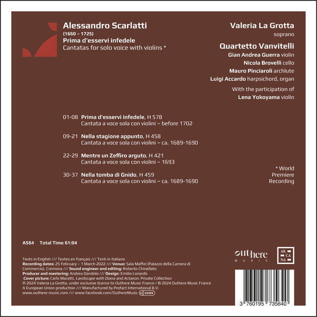 Of these, the Quartetto Vanvitelli, in its fifth recording for Arcana (and here joined by Lena Yokoyama as second violin), offers us four unpublished cantatas. Works associated with the formidable Roman patronage of the last decade of the 17th century. More specifically, with “La Giorgina” (as Angela Voglia was known), the celebrated soprano linked first to Christina of Sweden, then to the Spanish Duke of Medinaceli, whose lover she was, both in Rome and at the viceregal court of Naples.
