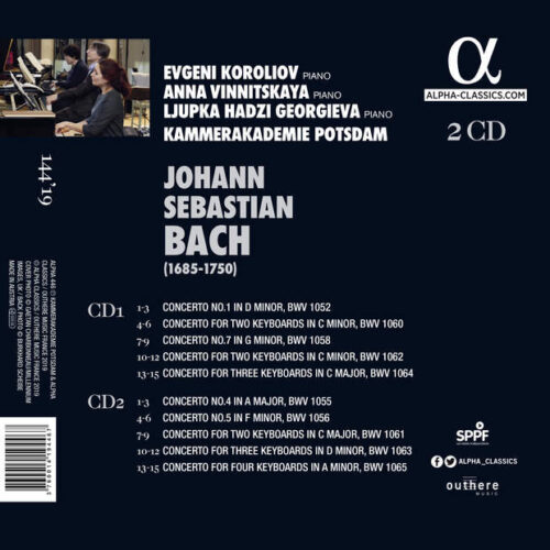 These three Slavonic pianists, who for some time have been aiming to record the Bach concertos as a team, decided to invite a German ensemble that is itself highly expert in Bach interpretation, the Potsdam Chamber Orchestra; they recorded this double album in a legendary venue where some of the greatest artists have recorded: the Jesus-Christus-Kirche in Berlin.
