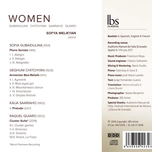 With Women, Sofya Melikyan introduces us to 3 female composers who seem marked by some historical design in which the momentous events of their countries of origin, and the magic of figures, have somehow crisscrossed and interwoven. As such, these three women represent countries that underwent tremendous upheavals a century ago.