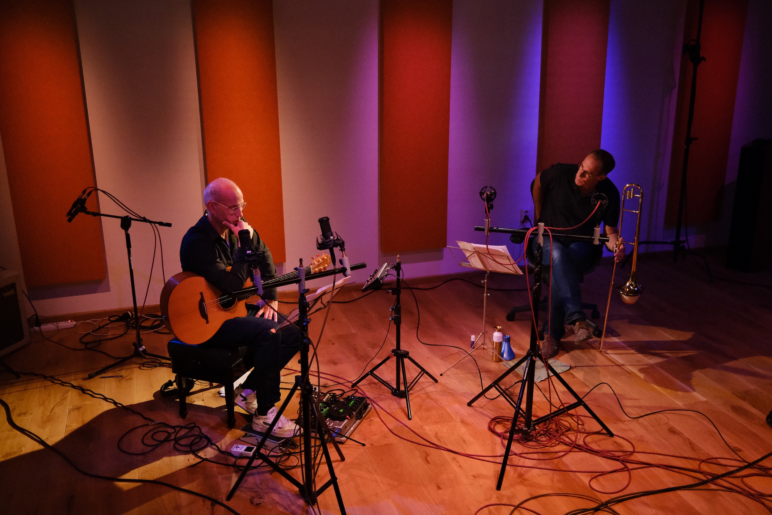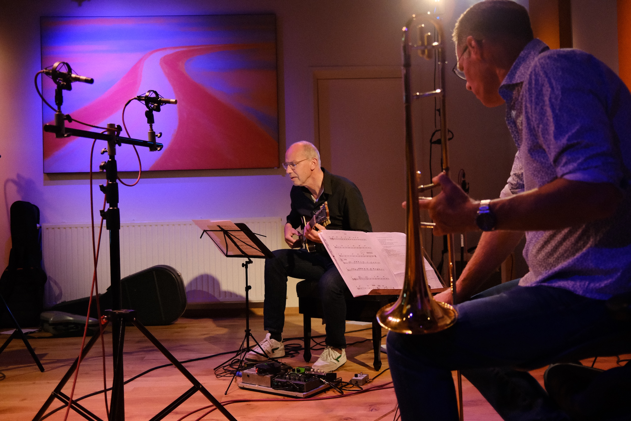 Out of that renewed meeting came The Art of Two — a duo that places trombone and guitar at its heart, embracing the apparent limitations of a small ensemble and transforming them into strengths. Their music is about freedom, dialogue, and color, about creating a sound world that balances intimacy with expansiveness. With their earlier project The Dutch Real Book, Ed and Ilja had already shown that they could reinterpret existing traditions in fresh, contemporary ways.