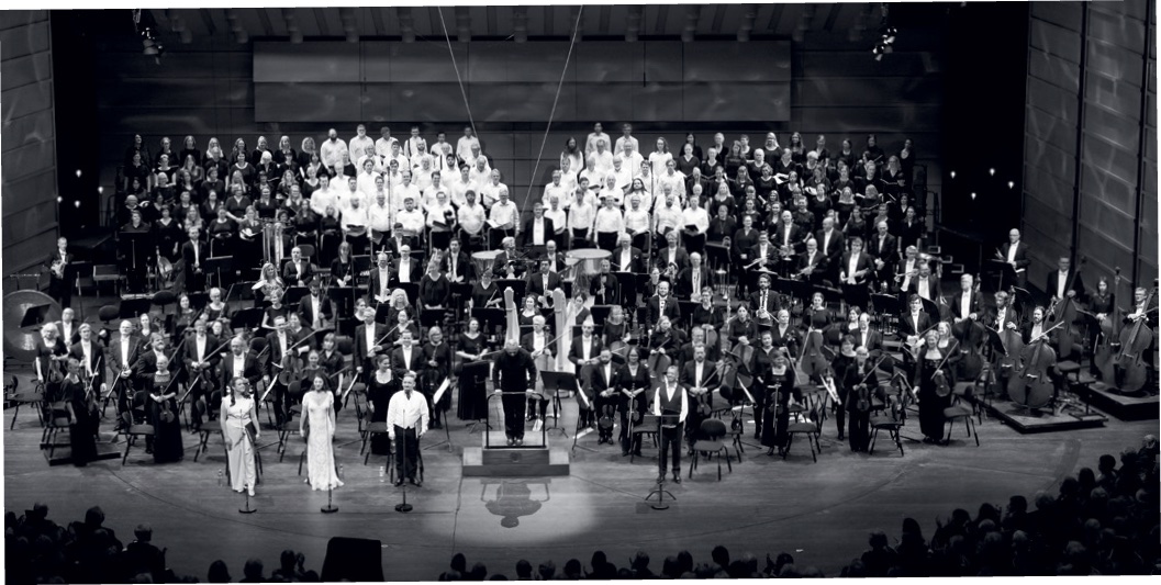 Three choirs participate in this recording, conducted by choirmaster Håkon Matti Skrede. These brilliant Bergen choirs have made a name for themselves with several major performances, not least Britten’s Peter Grimes, Wagner’s Parsifal, Brahms’s A German Requiem, and Mahler’s Symphony No. 2.
