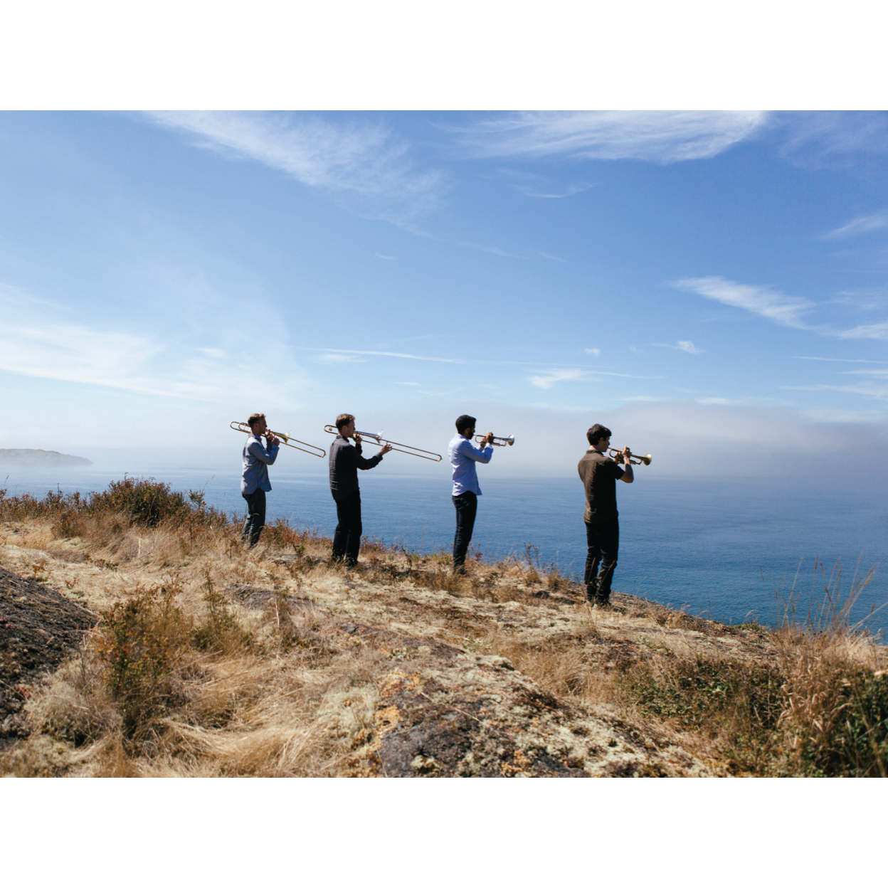 Four young Seattle brass players, all relocated to New York City to study at Juilliard and the Manhattan School of Music, decided to form a quartet in late 2011. Through much experimentation they discovered a colorful collective sound that drew from American folk music, indie rock, jazz, and classical music. For the next two years they performed constantly in both cities, creating and developing a large repertoire of original compositions. In early 2013 The Westerlies were approached by their Seattle-based teacher, friend, and mentor, Wayne Horvitz, to create a record of his music. They wholeheartedly agreed; all four of them were already very familiar with his body of work and had played in a number of his ensembles. After exploring his prolific output of the past thirty years, they selected a range of jazz tunes, film music, and classical chamber pieces, and chose to record them on location during their annual summer residency in the San Juan Islands of Washington.